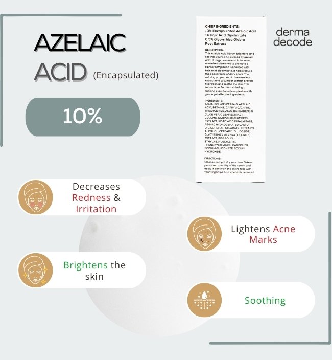 A strong yet gentle serum that utilizes Kojic acid & Azelaic acid as the chief ingredients, along with licorice root extract. This serum works on reducing post-acne marks and redness as well as uneven skin tone, while calming the skin. Azelaic acid helps to brighten and soothe the skin, reducing redness, while kojic acid and licorice minimize dark spots, scars and pigmentation. This is a daily use serum that can be applied up to two times a day. Apart from targeted action on dark spots, marks and pigmentation, this serum also functions in brightening the skin when used regularly. In terms of application, the serum is very light weight with a milky texture. It gets absorbed very quickly and does not feel sticky or tacky upon application.